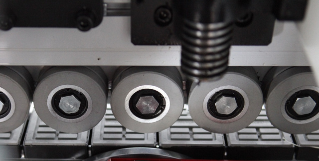 ![]() | Прижимная балка Алюминиевая прижимная балка изготовлена из усиленного многокамерного профиля высокой жесткости.Высота прижимной балки настраивается с помощью специального маховика и цифрового счетчика.Резиновые ролики имеют малый шаг и большую площадь контакта. Благодаря этому плотно прижимают заготовки, обеспечивая их перемещение без смещения и точность обработки кромки. |