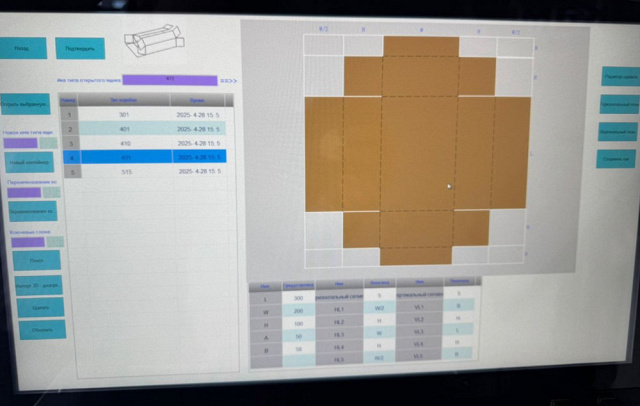 ![]() | Штатное программное обеспечение Встроенное программное обеспечение (ПО) штатно поставляемое с завода вместе со станком имеет русскоязычный простой и интуитивно понятный интерфейс. ПО позволяет при помощи набора встроенных команд и макросов создать программу для изготовления требуемой коробки, или использовать взять уже ранее созданные и сохраненные программы из библиотеки. |