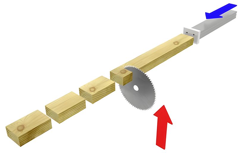 EcoWood Cut 250применяется для торцевания и обрезки столярно- строительных изделий, клееного бруса, ступеней, щита, заготовки для деревянных поддонов, паллет и деревянной тары, бобышек для поддонов, погонажных изделий, вагонки, доски пола, имитации бруса, планкена, детских кроватей, деталей для стандартного домостроения, укутанного и облицованного дверного погонажа, наличника и коробочного бруса.Схемы обработки