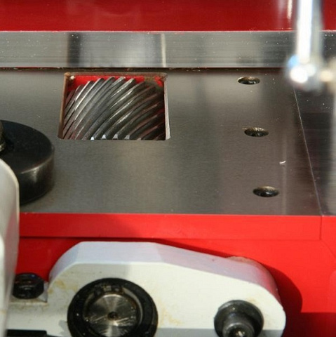 Подающий и рабочий столы прошли специальную термическую обработку для достижения максимальной прочности и покрыты толстым слоем твердого хрома (0,3 мм) для достижения повышенной износоустойчивости. Полированная поверхность стола уменьшает трение заготовки о стол и снижает усилие на привод подачи.