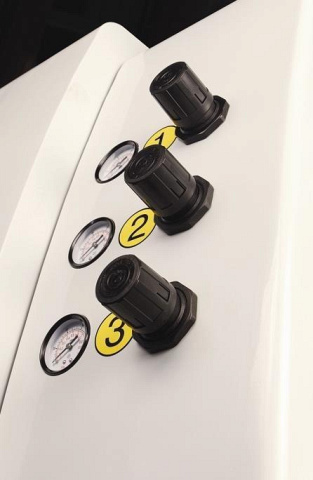 Три независимых пневматических регулятора, управляющие прижимом трех независимых групп подающих роликов, обеспечивают безупречное позиционирование заготовки в процессе обработки в каждой зоне. Снижается время на переналадку станка, повышается производительность, в отличие от пружин, пневматика – стабильный и постоянный прижим заготовок на протяжении всего времени работы станка.