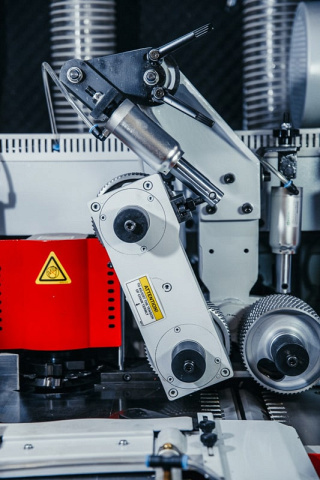 Прижимная балка станка изготовлена из массивного профиля, к которому крепятся верхние агрегаты системы подачи заготовок. Подобная конструкция предусматривает стабильную работу и надежность даже при больших нагрузках.