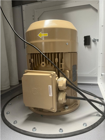 Вентилятор в защитном кожухе В отличие от конкурентов вентилятор установлен внутри корпуса фильтра в кожухе. Меньше шума, более комфортная работа в цехе. Все электрические провода убраны в каналы для долговечной работы и исключения возможных поломок и обрывов. | |