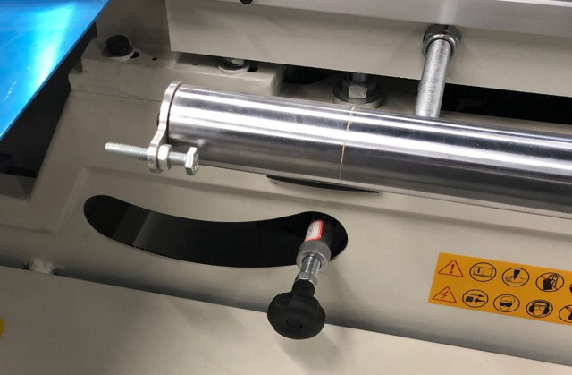 ![]() | Продольный упор Управление продольным упором осуществляется через ЧПУ контролер. Перемещения упора осуществляется при помощи сервомотора и высокоточной шариковинтовой пары. Это обеспечивает плавность хода и точность выставления размера в 0,1 мм. Скорость перемещения достигает до 15 м/мин. |