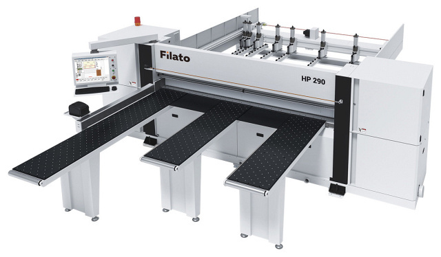Форматно-раскроечный центр с ЧПУ Filato HP 290 предназначен для высококачественного автоматического раскроя МДФ, ДСтП, фанеры, облицованных и необлицованных, а также любых плитных материалов, схожих по физико – механическим свойствам с древесными (пластиков, композитов, хризотилцементных плит и т. д.)