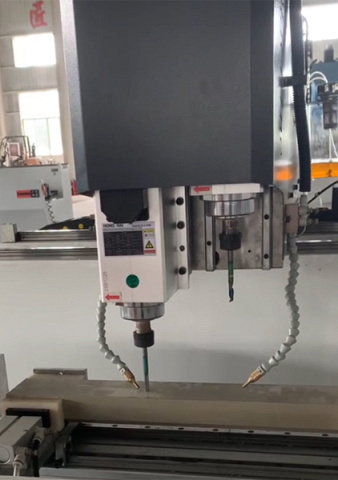 Работа осуществляется двумя фрезерными шпинделями с воздушным охлаждением мощностью 4,5 кВт и 18000 об/мин, который отличается высокой точностью обработки. Система управления станком c ЧПУ «Syntec». Станина термообработана.