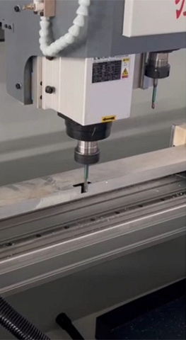 Станок создан для фрезеровки круглых отверстий, пазов, снятия фасок, выемок под замки и петли, фрезерование сложных форм и т. д. в профилях из алюминия и ПВХ.