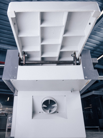 Запатентованная складывающаяся пополам защита ножевого вала от итальянской компании CPS. Обеспечивает безопасность работы оператора на станке. Выполнено в соответствии с нормами СЕ.