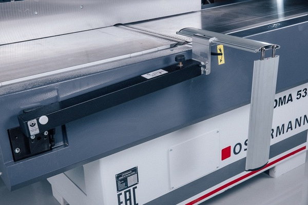 OSTERMANN DMA 41LW  Чугунная направляющая линейка  Длиной 1500 мм  Легко перемещается на износоустойчивых роликах, не царапая стол  Массивная цилиндрическая направляющая обеспечивает жесткость линейки  Легкий и удобный наклон направляющей линейки ...Чугунная направляющая линейка