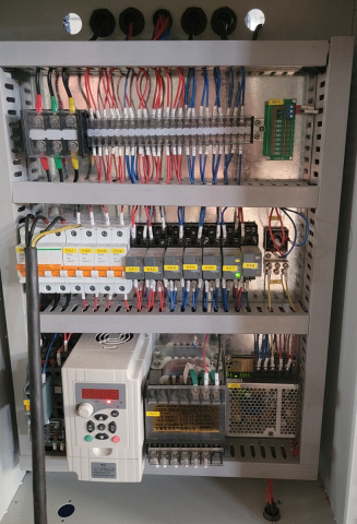 Электрошкаф полностью соответствует нормам СЕ, что указывает на соответствие продукции всем необходимым требованиям законодательства Европейского Союза. Основные компоненты установленной электроники принадлежат компании Schneider (Франция). При открытии двери останавливается процесс резания.