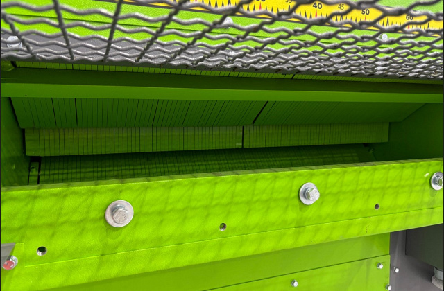 ![]() | Система подачи Приводится в действие с помощью мотора WEG и редуктора Bonfiglioli, через систему отклоняющихся и передающих звездочек, соединенных единой цепью. Это позволяет привес Mebor VR 800ти в движение все 5 подающих рябух (2 верхние и 3 нижние), а также синхронизировать скорость вращения подающих вальцов и обеспечить равномерность подачи доски. |