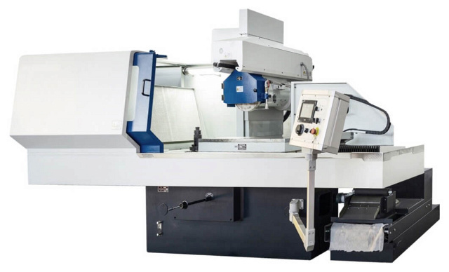 Панель управления станка с PLC контроллером находится на подвижном блоке, расположенном на поворотном кронштейне, что делает процесс управления станком более удобным, так как позволяет настроить необходимое положение пульта под определенным углом. PLC контроллер с цветным сенсорным ЖК дисплеем позволяет вводить параметры шлифования и управлять рабочим процессом станка. Дружественный интерфейс, позволяющий запрограммировать станок на различные режимы шлифования, имеет функции отображения ошибок станка на мониторе и возврата в стартовое положение по осям Y и Z.