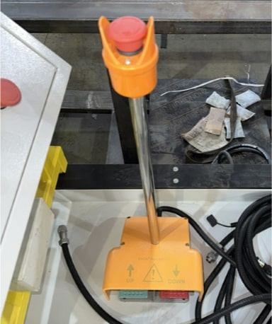 ![]() | Переносная стойка ручного управления Помимо шкафа электроуправления подъемный стол оснащается переносной стойкой ручного управления, на которой располагается кнопка аварийной остановки, педали опускания и поднимания гидравлического стола. |