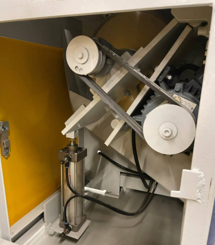 После достижения необходимой длины заготовка торцуется в размер пильным диском с нижним подъёмом.