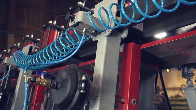 ![]() | Пневматические откатные фронтальные прижимы Удобно и быстро устанавливаются и автоматически с помощью кнопки зажимают пакет на необходимое усилие. |