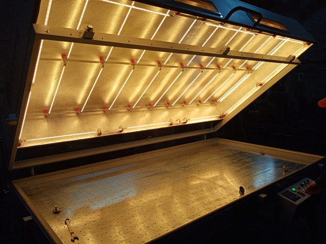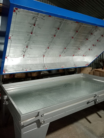 В комплектации Comfort рабочий стол покрыт перфорированным листом оцинкованной стали, что обеспечивает долговечность поверхности стола и равномерное распределение вакуума в процессе прессования. В комплектации Standart стол покрыт 16 мм листом МДФ.