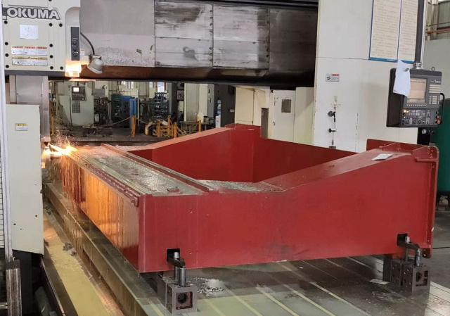 Все посадочные и крепежные места обрабатывается на 5-ти осевом высокоточном металлообрабатывающем центре за одну установку. Это позволяет достигать заданных параметров точности станины и последующих перемещений по осям.
