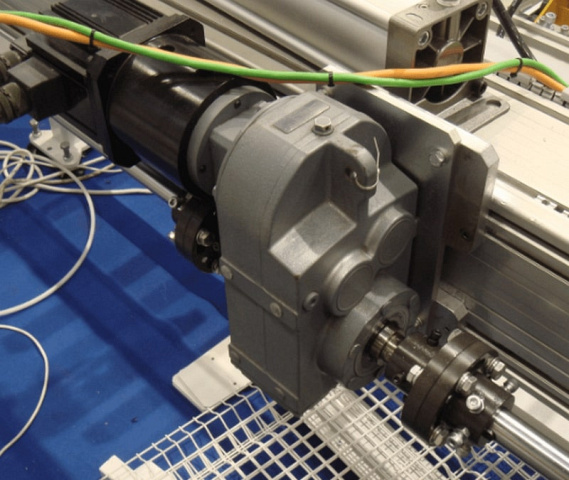 За перемещение толкателя отвечает сервомотор – редуктор Gudel (Германия). Перемещение толкателя задается непосредственно системой ЧПУ. Перемещение толкателя осуществляется по круглым, износостойким направляющим при помощи металлических роликов с пылезащищенными подшипниками. Система смазки автоматизирована и управляется системой ЧПУ. Данная конструкция обеспечивает равномерность и плавность перемещения толкателя. За счет применения передачи шестерня-рейка скорость хода толкателя достигает 80 м/мин. Параллельность хода обеспечивается за счет торсионного вала.