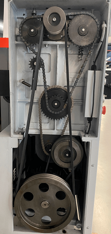 Надежный привод ножевого вала и роликов подачи от главного эл.двигателя через 3 клиновых ремня.
