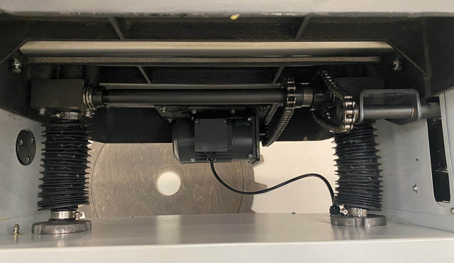 Перемещение стола по высоте осуществляется от отдельного двигателя, расположенного под столом посредством цепи.