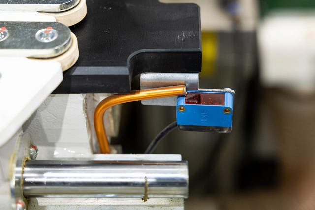 Боковой прижим с роликами используется для перемещения заготовок в горизонтальной плоскости. Перемещение осуществляется с помощью шестерни и рейки. В соответствии с параметрами детали, настраивается на определенную ширину, исключая любые смещения деталей.