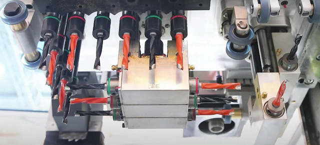 10 горизонтальных шпинделей для сверления в торцы (3 + 3; 2 + 2)