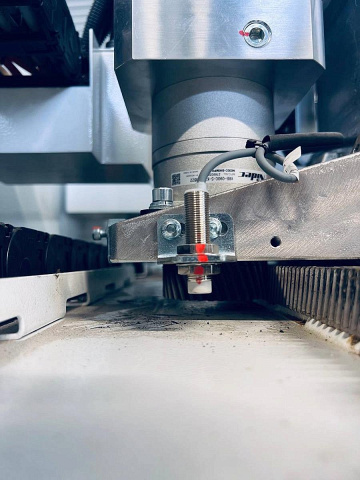Датчик установлен на массивной раме, что гарантирует стабильность и точность измерений детали. Служит для контроля линейных размеров детали, позволяя на этом этапе выявить производственный брак и предотвратить повреждение станка из-за ошибки оператора. Датчик оборудован форсункой для продувки.