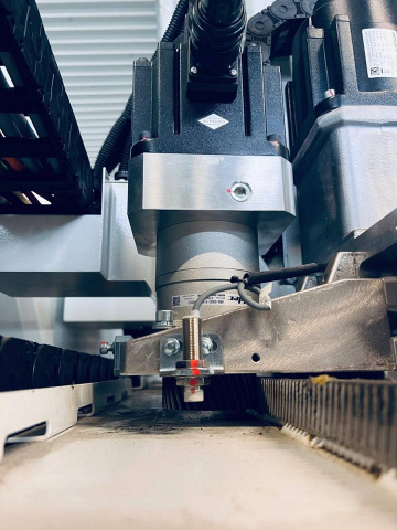 ![]() | Автоматическая система прижимов деталей при перемещении Для горизонтального перемещения детали применяется программно управляемый прижим с роликами. Он автоматически настраивается сервоприводом на необходимую ширину заготовки, предотвращая её смещение при движении по рабочему столу. |