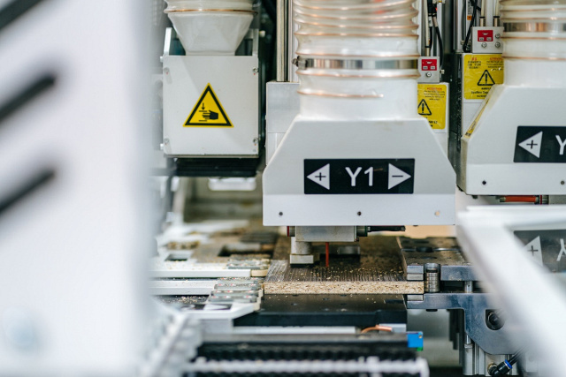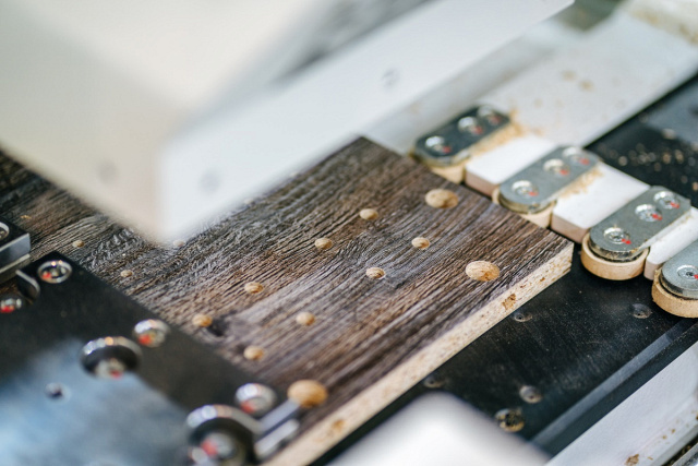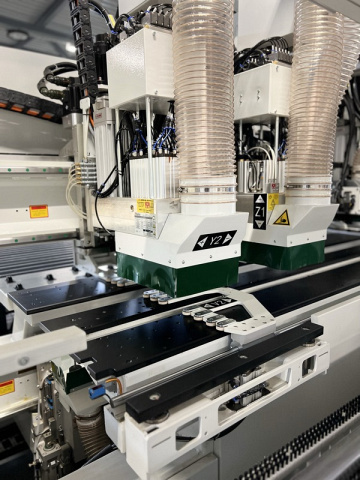 Отличительная особенность данной модели - это система автоматической подачи деталей в станок с одновременным считыванием информации о необходимой карте присадки с этикетки находящейся на детали и вызова требуемой программы обработки в автоматическом режиме. Данная особенность позволяет максимально исключить человеческое влияние. Станок также можно оснащать роботом на загрузке и приемке деталей или интегрировать в автоматические производственные линии обеспечивая высокоскоростное и точное сверление всех карт присадки за один проход детали.