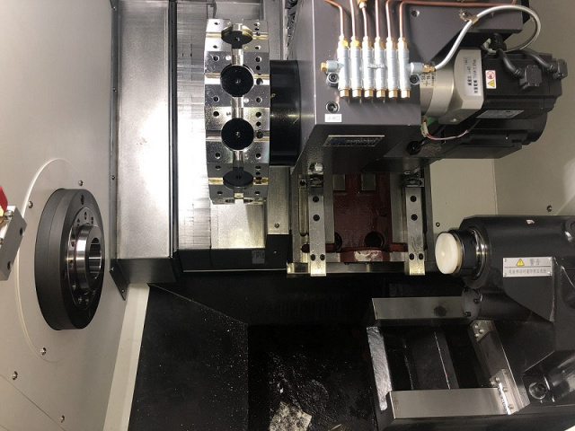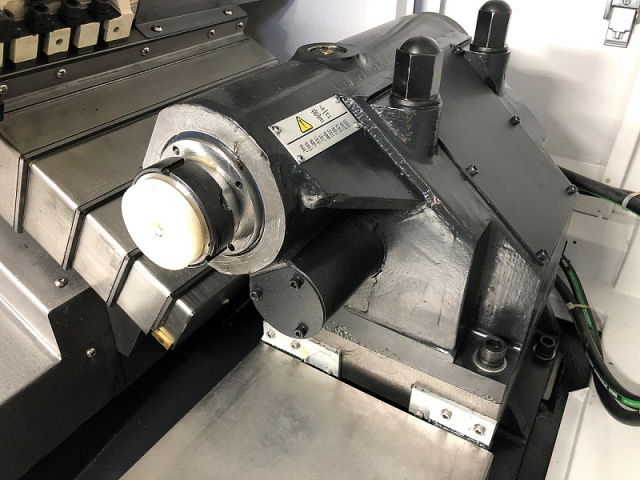 Скорость вращения шпинделя регулируется бесступенчато, что обеспечивает высокую точность и шероховатость обработки. Станок оснащен шпинделем с полым гидроцилиндром для обработки прутковдо Ø 75 ммпроизводстваChandox (Тайвань).