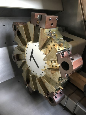 ![]() | Револьверная голова Для достижения наилучших показателей точности на станке используется револьверная голова фирмы HYDEX, Тайвань. Точность индексации и повторяемости достигается за счёт применения серводвигателя и идеальной калибровки всех комплектющих. Более 80% комплектющих поставляются из Японии и имеют наилучшие показатели изностойкости и виброгашения. Точность позиционирования составляет 0,003 мм. На моделях TC 100, TC 150 – рев. голова - 8 поз., ТС 200-250 – 12 поз., ТС 300 – 10 поз. |